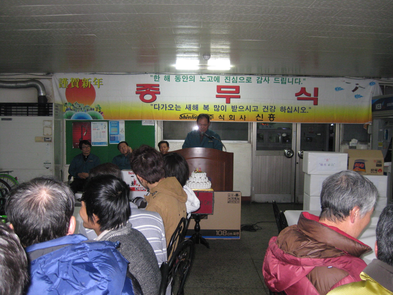 2015³âÀ» ¸¶¹«¸®ÇÏ´Â Á¾¹«½Ä°ú 42ÁÖ³â ⸳±â³äÇà»ç°¡ 12¿ù 31ÀÏ 17½Ã30ºÐ »ç³»½Ä´ç¿¡¼ ¿·È´Ù. ÀÌ ³¯ Á¾¹«½Ä°ú 42ÁÖ³â ⸳±â³äÇà»ç¿¡´Â ±Ù¼Ó»ç¿øÇ¥Ã¢ , ¿ì¼ö.¸ð¹ü»ç¿øÇ¥Ã¢ , 2015³âµµ ½ÂÁøÀÚ ÀÓ¸íÀå Àü¼ö¿¡ ÀÌ¾î ³ëµ¿Á¶ÇÕ ÁöȸÀå Àλ縻¾¸°ú ºÎ»çÀå Àλ縻¾¸ÀÌ ÀÖ¾ú´Ù. ÀÌ¾î¼ Ã¢¸³±â³ä ÄÉÀÍ Ä¿ÆÃ°ú °æÇ°(TV/ÀÚÀü°Å/ÀüÀÚ·¹ÀÎÁö µî)Ãß÷À» ÇÏ¿´°í ȸ»ç¿¡¼ ÁغñÇÑ ´Ù°úȸ ¿Í ¶±±¹À» Àü»ç¿øÀÌ ÇÑ ±×¸©À» ¸Ô¾ú´Ù. Àü»ç¿øÀº ³»³â(º´½Å³â)¿¡´Â ´õ¿í ´õ ¿½ÉÈ÷ ÇÒ °ÍÀ» ´ÙÁüÇÏ¿´´Ù.